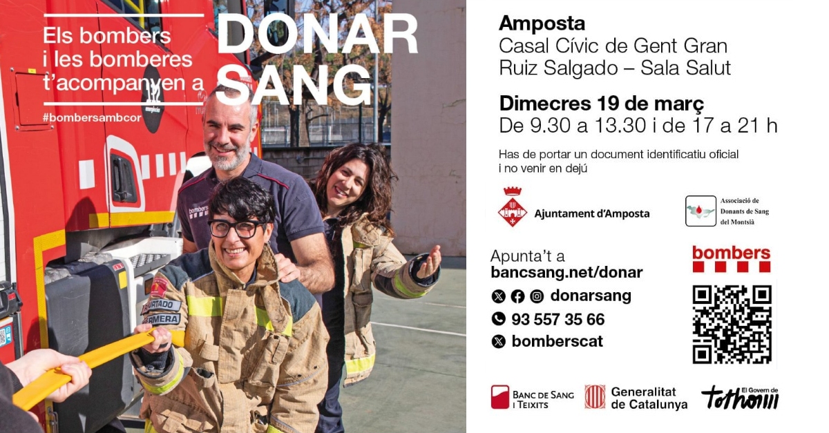 El Parc de Bombers d’Amposta, és un dels 22 parcs de tot Catalunya que s’uni s’uneix a la campanya anual de donació de sang, que a Ampsota es farà el 19 de març de 9:30 a 13:30 i de 17 a 21 hores, al Casal Cívic Ruiz Salgado. [+]