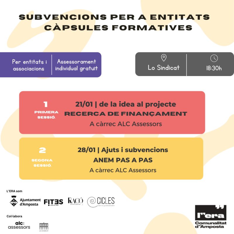 Si formes part d’una entitat o associació (o en vols crear una) i vols impulsar un projecte, aquestes sessions són per a tu.