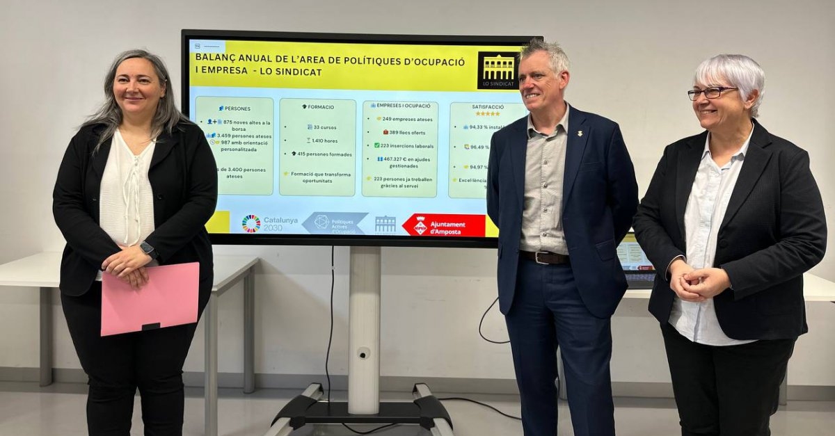 L'Ajuntament d'Amposta ha fet públic el balanç d’activitat de Lo Sindicat corresponent a l’any 2025, unes dades que refermen l’equipament com l’eix central de les polítiques d’ocupació i dinamització econòmica de la ciutat. Durant l’any passat, la tasca dels vint professionals que integren el servei va permetre assolir 223 insercions laborals i oferir acompanyament a gairebé 3.500 persones.